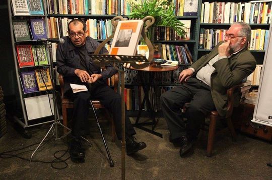 Miguel Ángel Campos (izquierda) y Jacobo Penzo durante la presentación del libro en la Librería El Buscón.