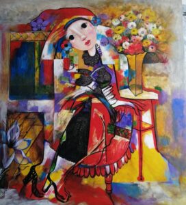 El “Sofá rojo” —su última serie— abarca el tratamiento de la estilización de la mujer. La evocación en sus formas y sentires y el atributo de la anatomía física. El dibujo está detrás del color. Aunque el título denote un tono sugestivo, la obra en sí es una recopilación sensible de la feminidad. De lo figurativo y lo abstracto. Con las tonalidades se simplifican la forma y la línea. “Me doy el lujo de manchar el dibujo, que siempre está antes que el color”, insiste.